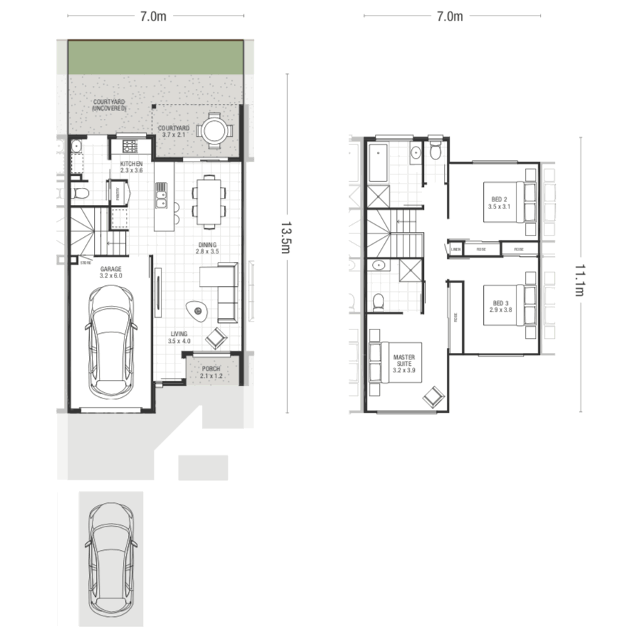 Two levels by design, upstairs are 3 spacious bedrooms, the master suite comes complete with ensuite and bedrooms 2 and 3 share the main bathroom including a bath.  Downstairs the open plan kitchen, living and dining spaces open up to the alfresco area – perfect for a summer night’s BBQ or entertaining indoors during the cooler months.