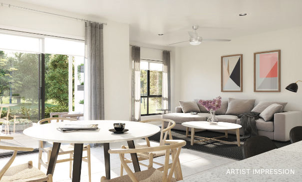 Inside you’ll find a spacious tropical oasis, complete with pool, greenspaces plus sheltered seating and BBQ area.  Adjacent to the complex, residents will discover the 2.2 hectares of parklands with integrated kids playground.